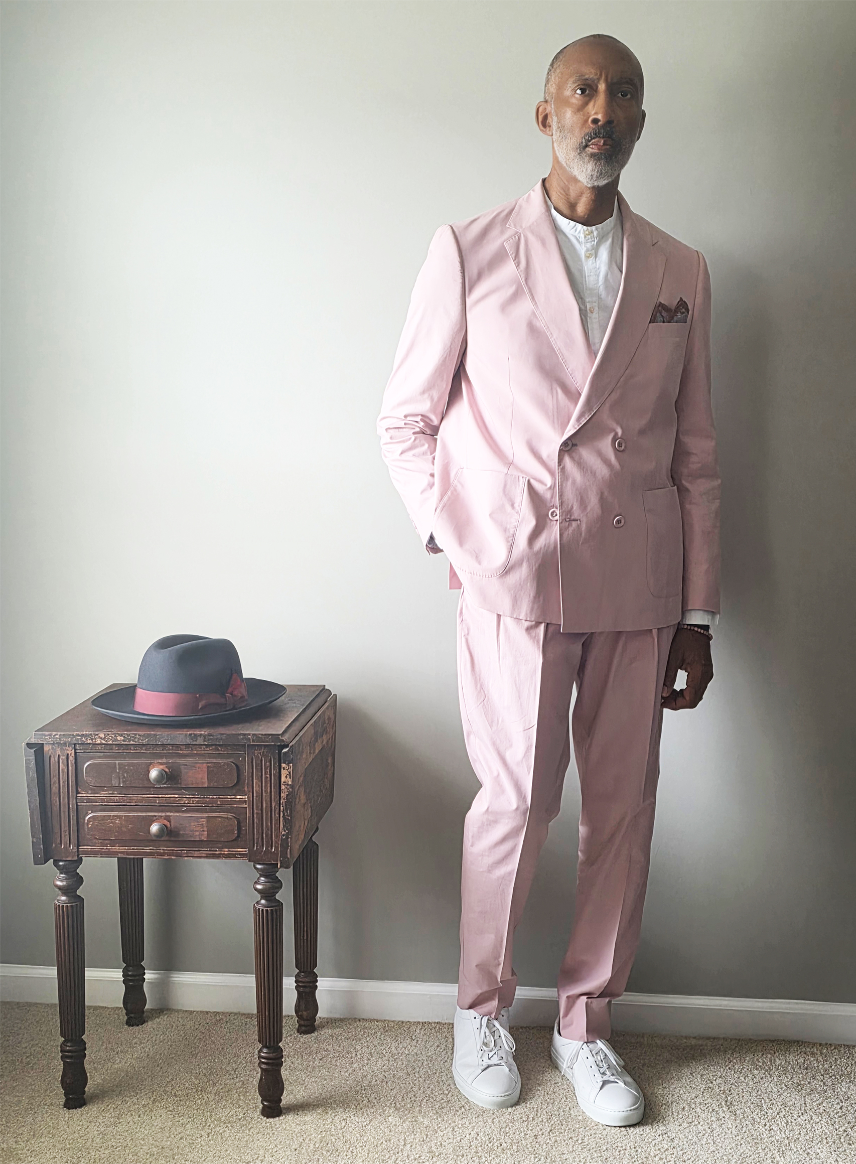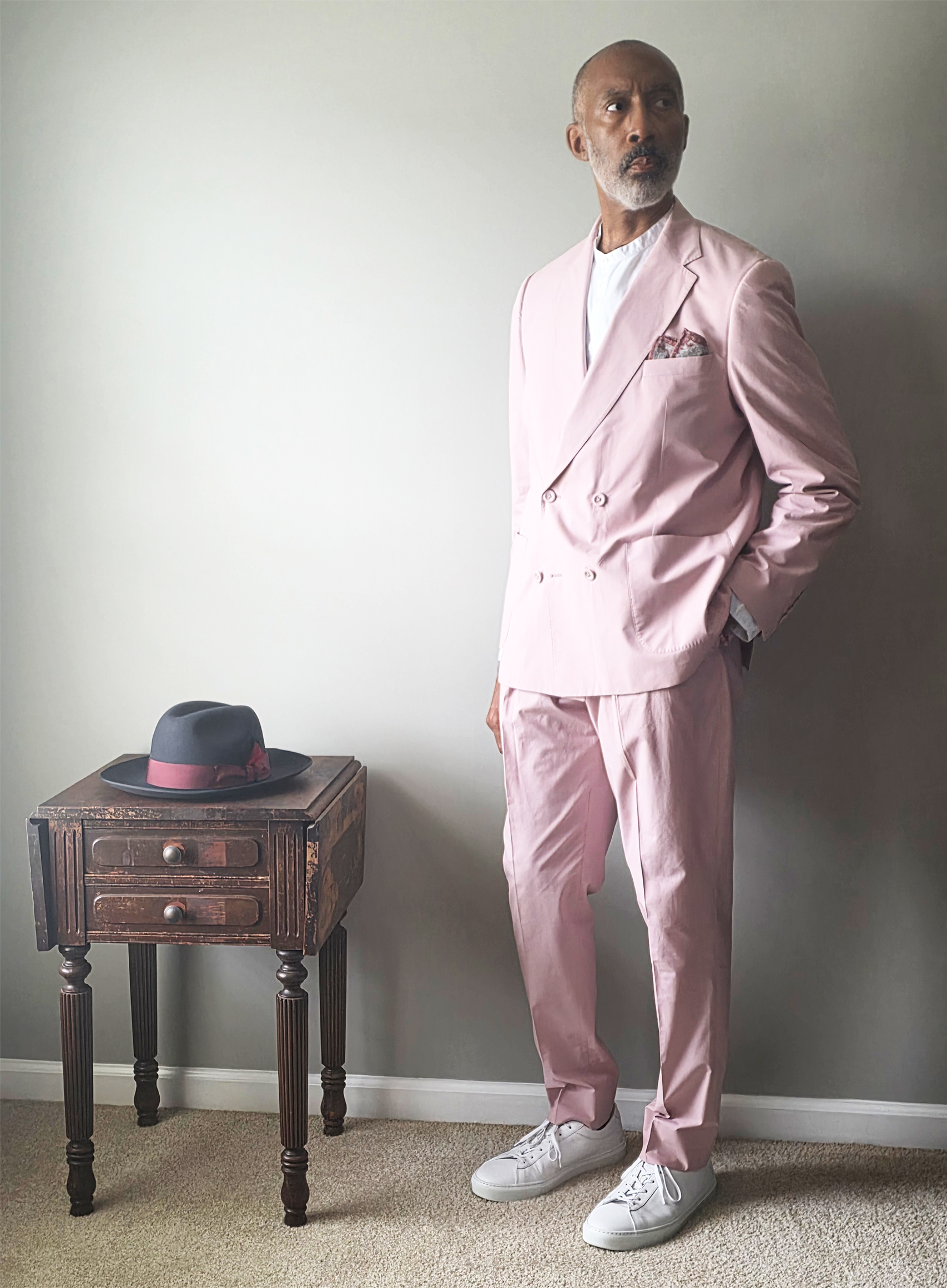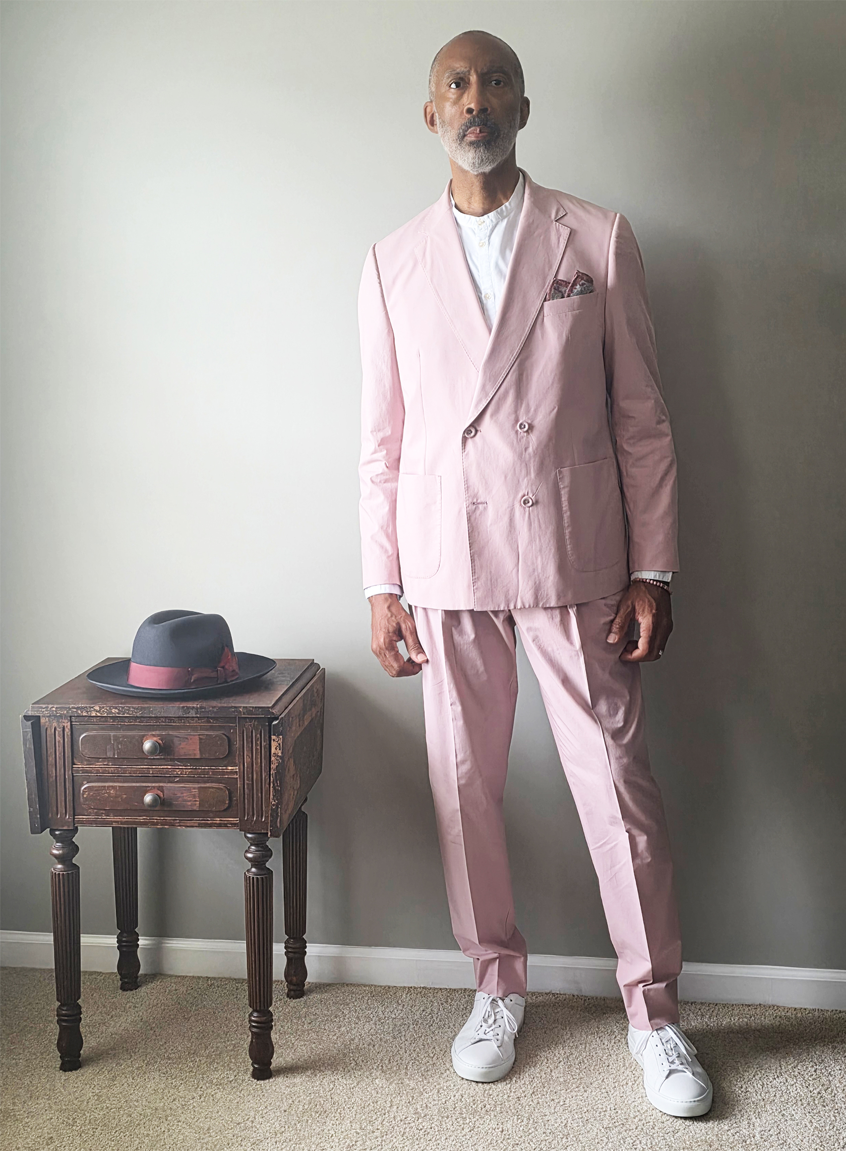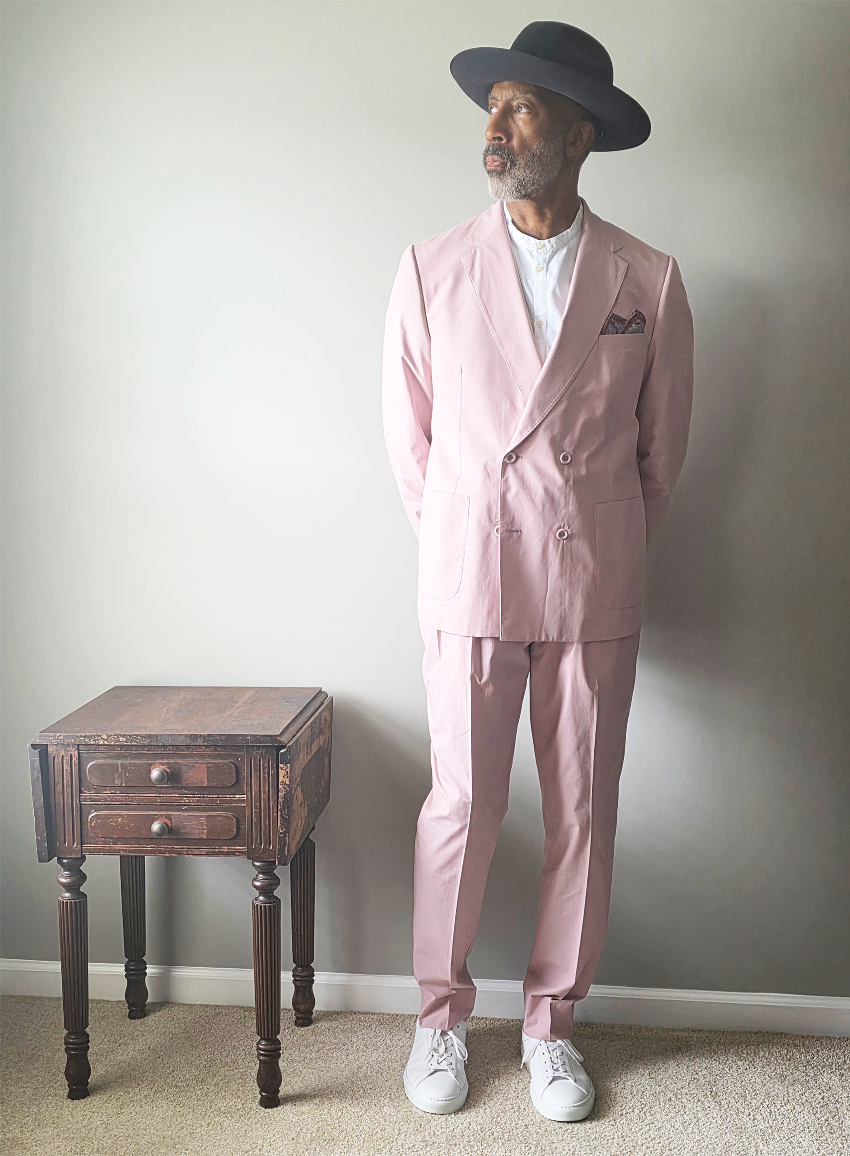 Eleventy linen pocket square, Flame Keepers Hat Club fedora and Koio sneakers