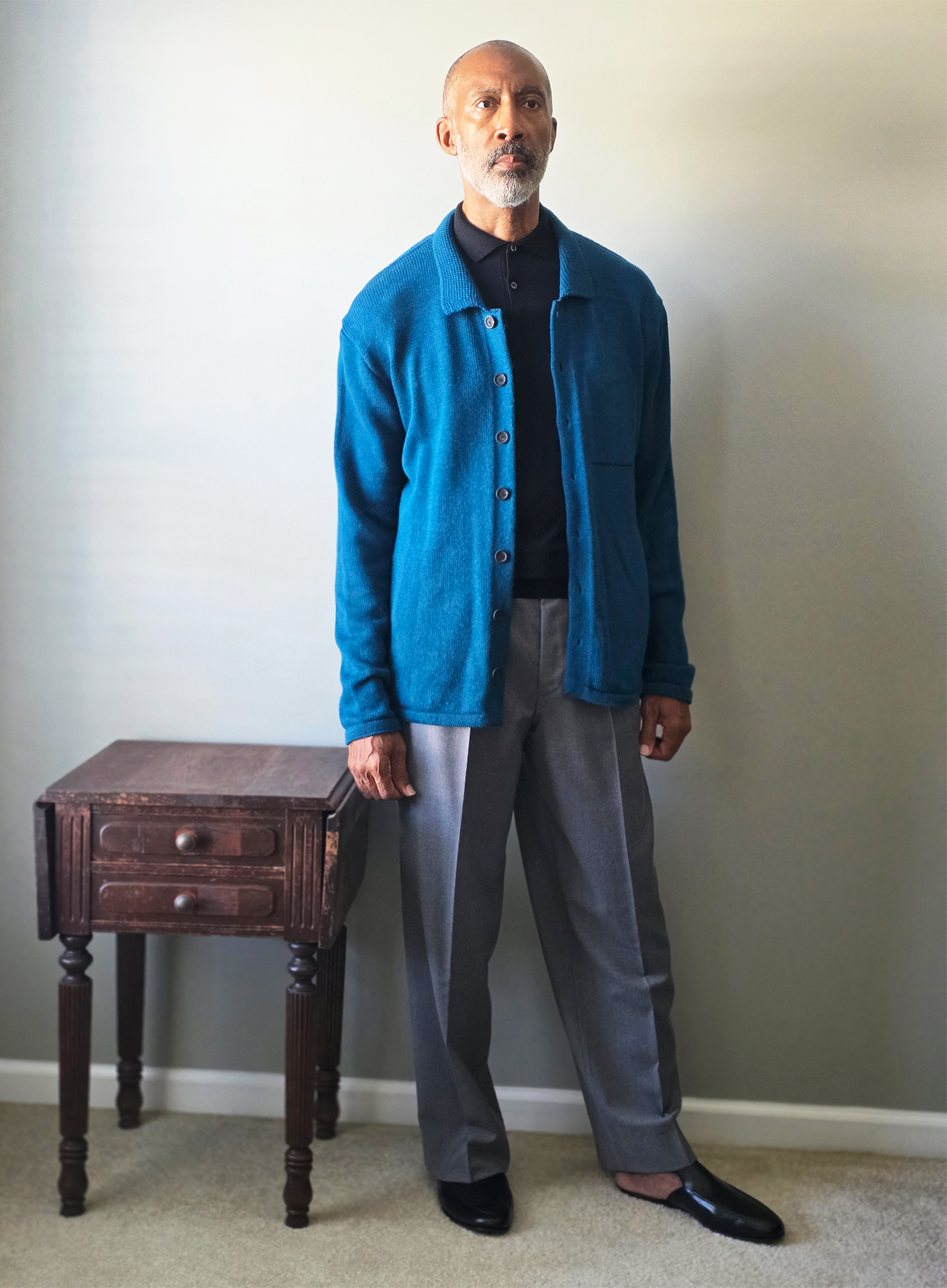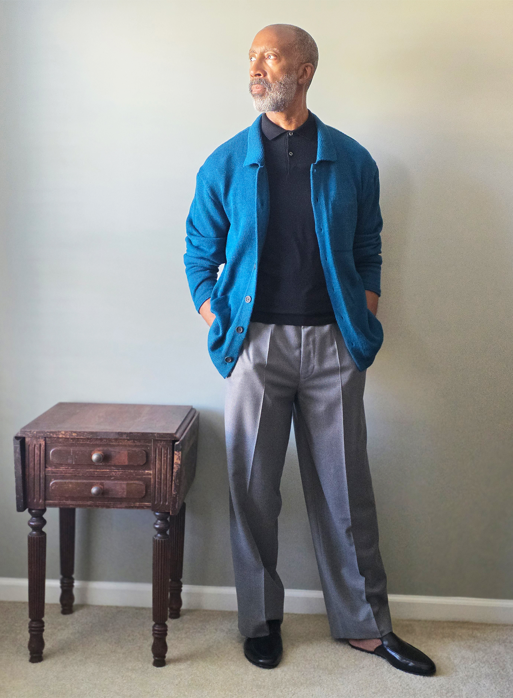 Inis Meáin wool/cashmere/silk/alpaca cardigan, John Smedley merino wool polo,